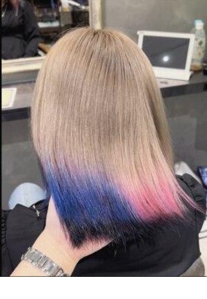 ターコイズブルーとイエローをMIXしたデザインインナーカラ☆周りとは違う...